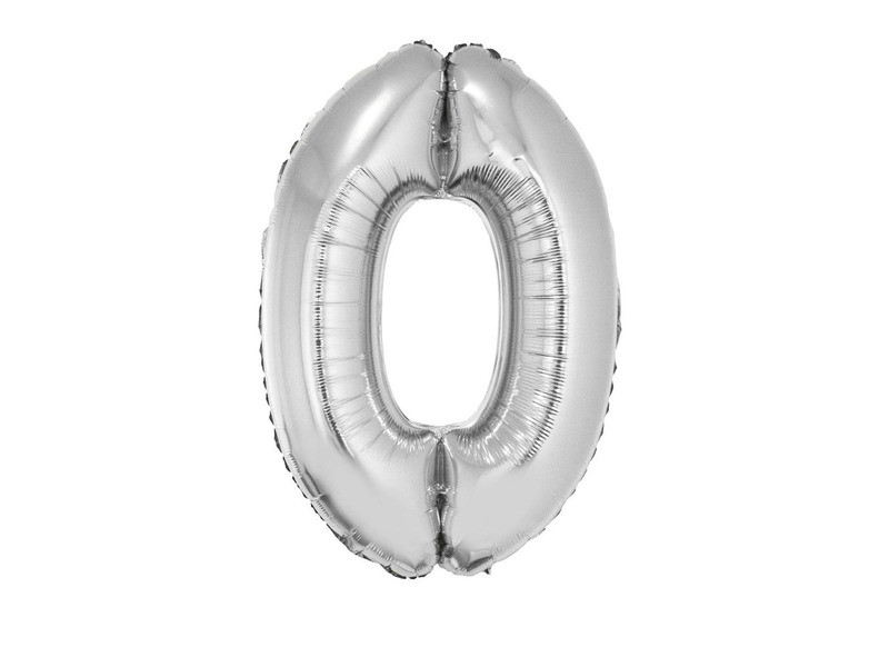 0 szám alakú fólia lufi, ezüst, 80 cm