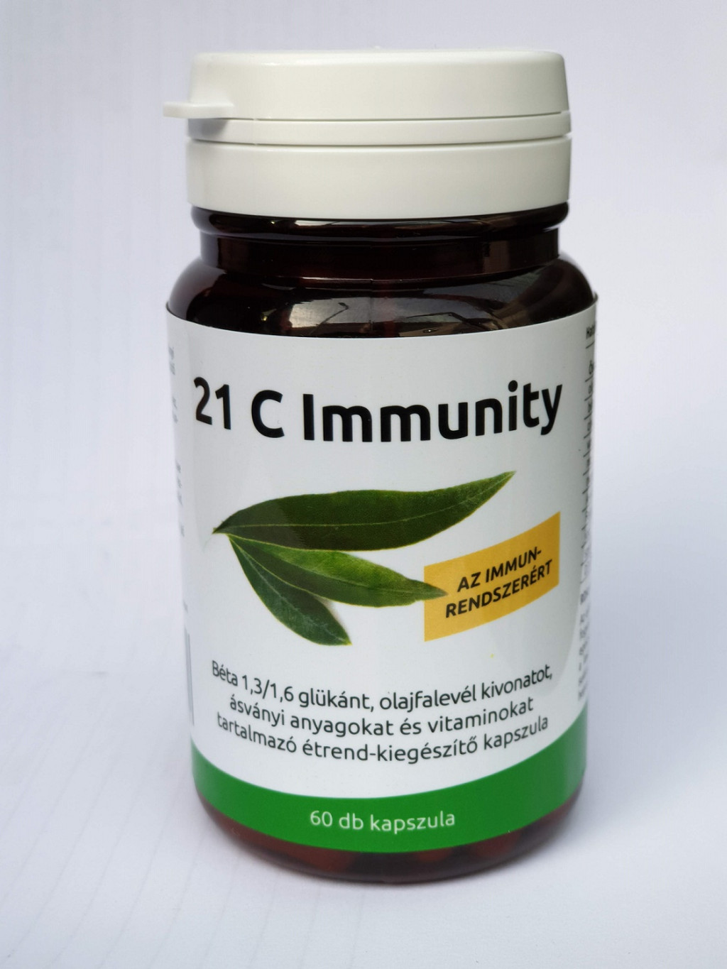 Béta glükán tartalmú táplálék-kiegészítő. A 21C Immunity kapszula béta-glükán és olajfalevél kivonata támogatja a szervezet saját védelmi mechanizmusait, fenntartja a természetes immunitást, és elősegíti az immunológiai védelem megerősítését. A 21C Immunity-ben található szelén hozzájárul a szervezetünkben zajló káros oxidatív folyamatok gátlásához, így elősegíti az immunrendszer működését.