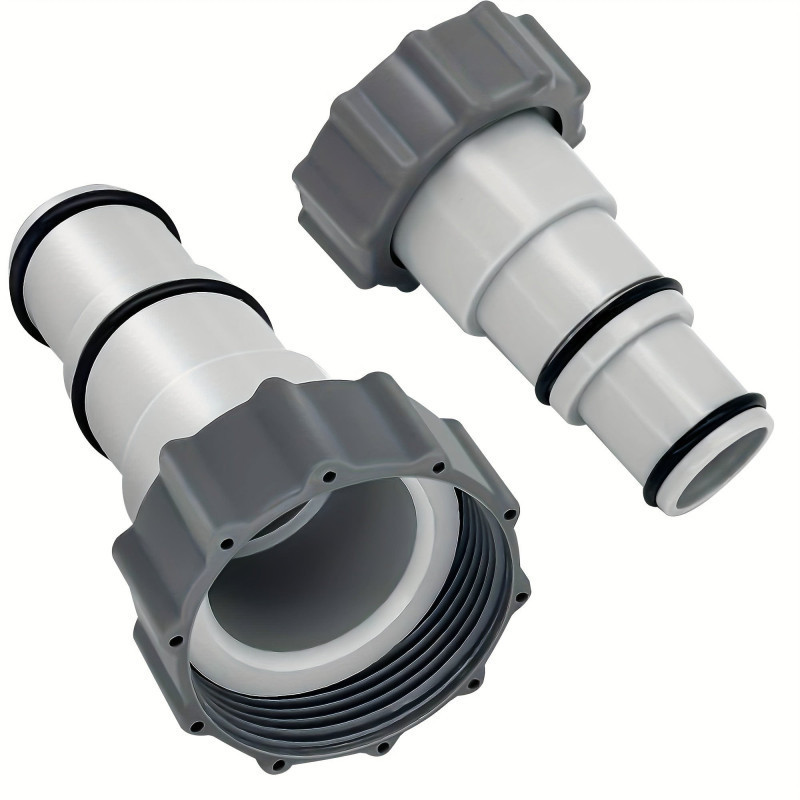 Adapter tömítőgyűrűvel: A tömítőgyűrűvel ellátott adapter két különböző méretű cső átalakítására képes, így egyszerűen, gördülékenyen csatlakoztathatod a szívócsövet a medence szivattyújához vagy dugattyús szelepéhez.