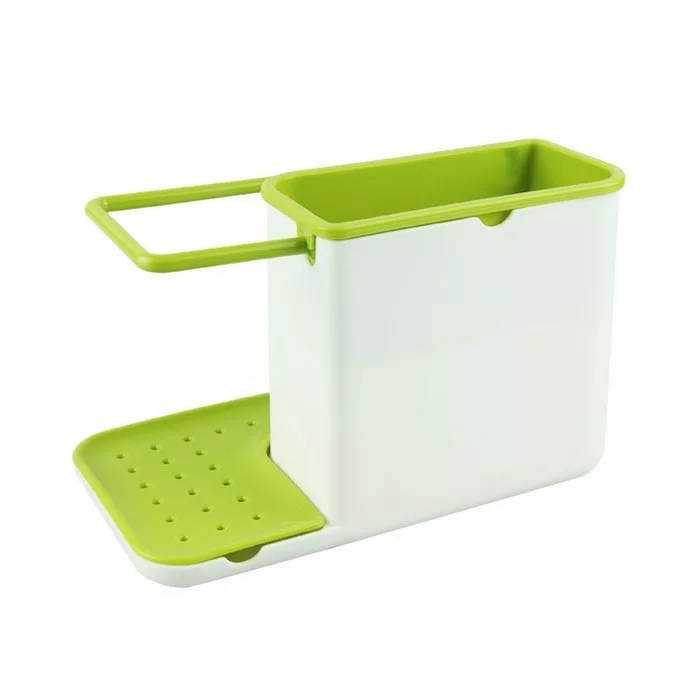 Itt a megoldás. Ezzel az egyszerű de praktikus tárolóval, egy helyen tudod tárolni a mosogatáshoz szükséges eszközöket. A 3 az 1-ben mosogató tároló L alakú kialakításának segítségével egy helyen tarthatod az összes eszközt, amire szükséged lehet.