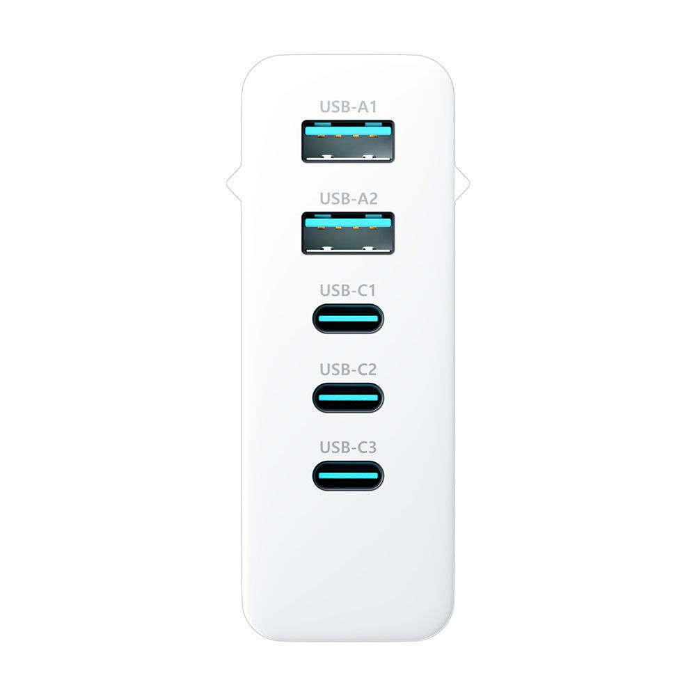 Adapter, 2xUSB-A, 3xUSB-C, 5V/9V/12V/15V/20V, 5A, 140W, QC, PD, White