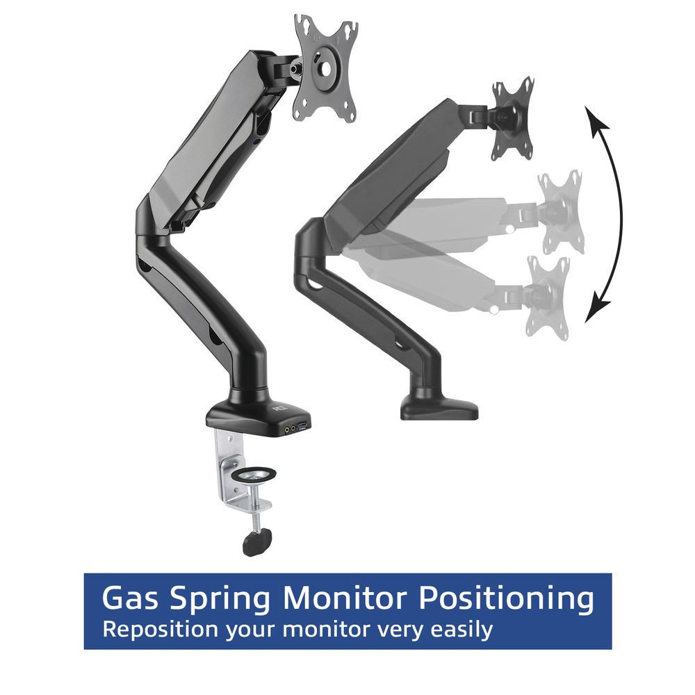 Hozzon létre egy ergonomikus és helytakarékos munkakörnyezet a tiszta fém AC8311 asztali gázrúgos konzol használatával. Helyezze a gázrugó segítségével egy kézzel a képernyőt ideális magasságba és látószögbe. Ideális flexibilis munkaterületekhez! Az ACT AC8311 asztali konzol alkalmas akár 32 inch-es 9 kg súlyú monitorhoz, könnyen odaerősítheti asztalához egy bilinccsel vagy grommet csíptetővel