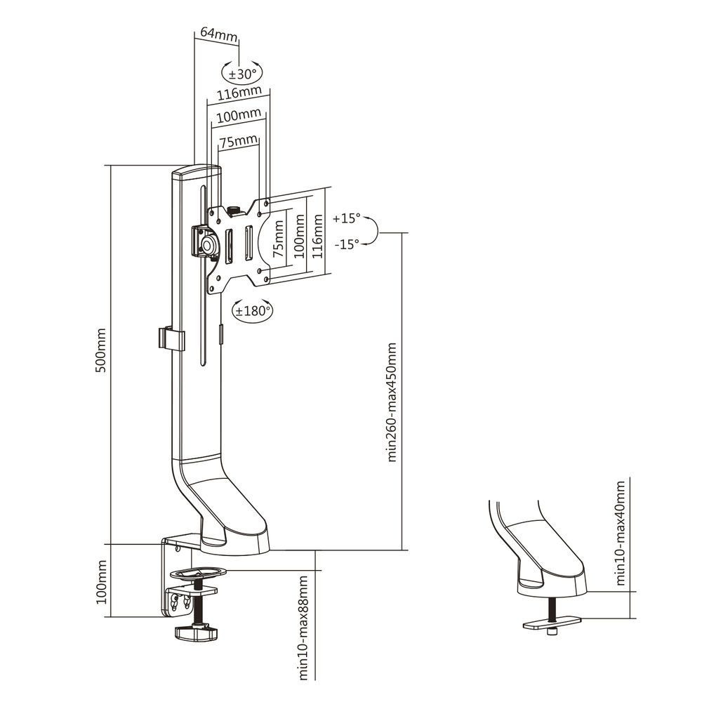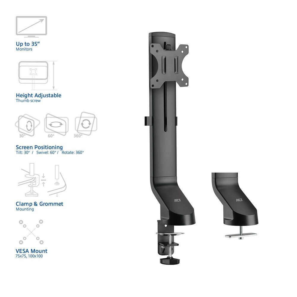 - Ergonomikus asztali tartó, amely 1 monitorhoz legfeljebb 35" és 8 kg súlyig alkalmas