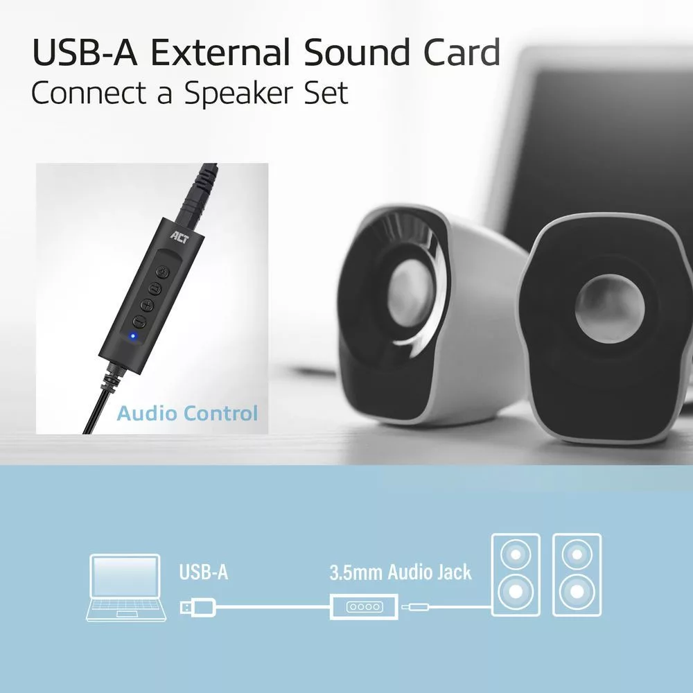 ACT AC9360 USB-A External Sound Card 2.0 USB Hangkártya