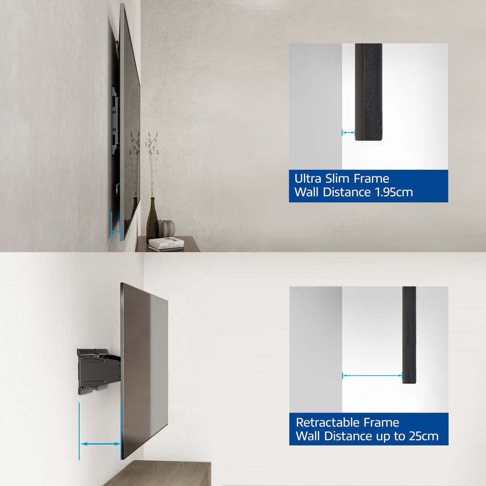 - Teljesen mozgatható TV-fali tartó, ultra vékony kivitelben: 43 hüvelykes és 90 hüvelykes, 50 kg-ig terjedő TV-khez alkalmas