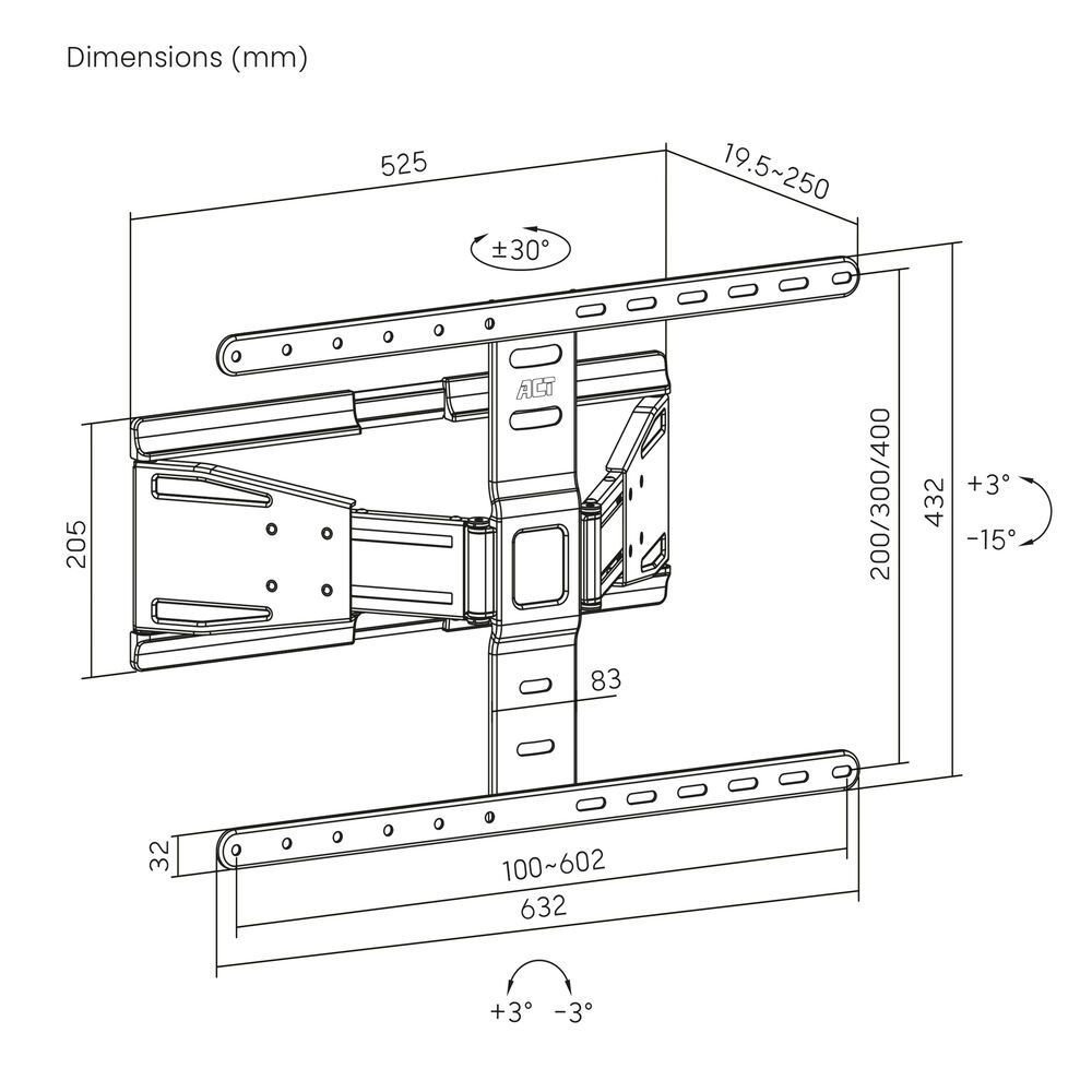 Az AC8357 teljes mozgású TV-fali tartó komplett csomagban érkezik, amely tartalmaz egy fúrósablont, vízmértéket és az összes szükséges rögzíto anyagot.