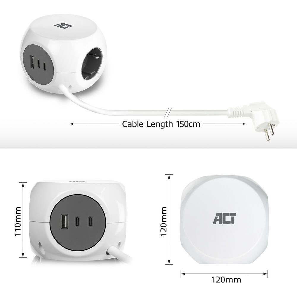 ACT Power Strip Cube F Socket Hálózati Elosztó 3DIN 1,5m White