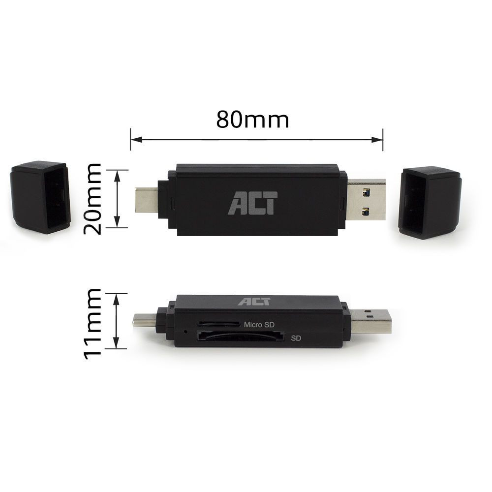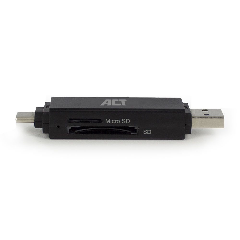 ACT USB-C/USB-A for SD/micro SD Card Reader Black