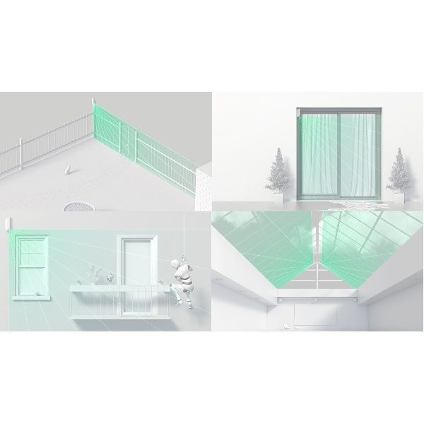 • A hagyományos mozgásérzékelőttel ellentétben a függőny infra egy keskeny vonalban érzékeli a mozgást, ideális bejáratok/ablakok/kerítésszakasz védelmére