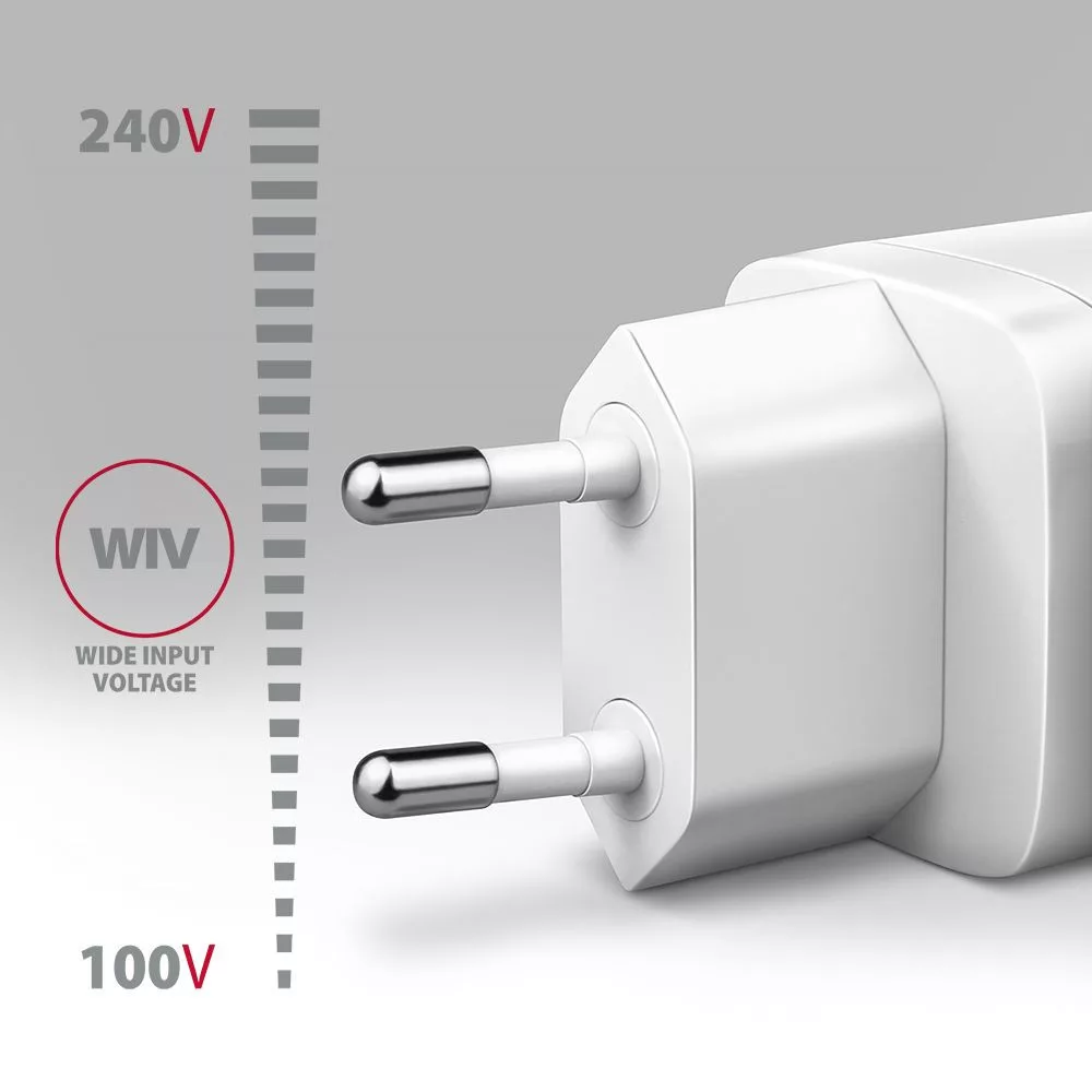 Az AIC funkció felismeri a csatlakoztatott készüléket, és automatikusan kiválasztja az optimális töltési sebességet, a CC funkció stabil töltést biztosít. A WIV funkció a bemeneti feszültségek széles skálájával működik, védi az adaptert a túl alacsony feszültség és a bemeneti túlfeszültség ellen, és lehetővé teszi több "nemzeti tápegység szabvány" használatát. A töltő adapter kimenetének haladó szintű biztonsági rendszere óvja a töltött készüléket a sérülésekkel szemben.