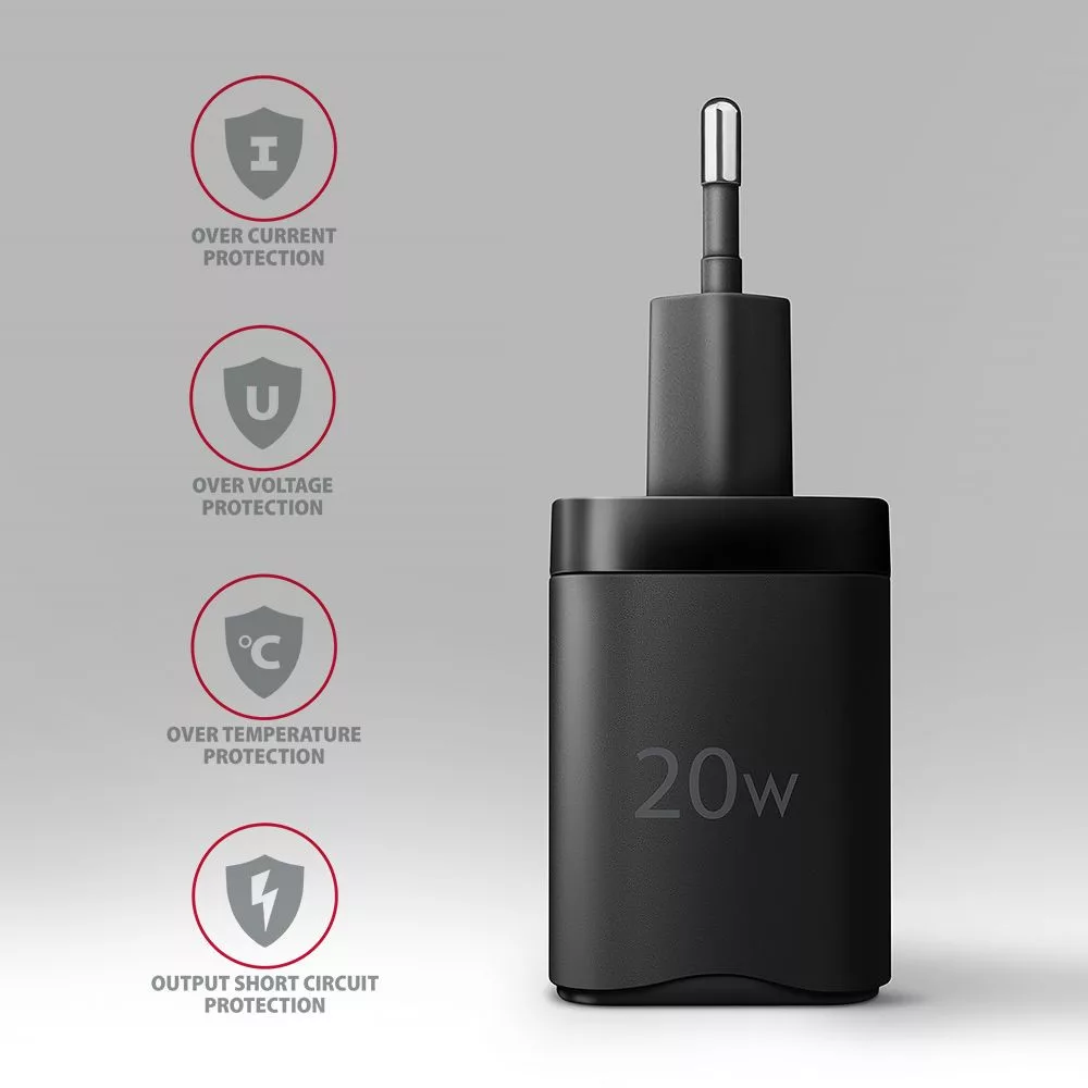 A töltő adapter kimenetének haladó szintű biztonsági rendszere óvja a töltött készüléket a sérülésekkel szemben. A töltő funkció azt is biztosítja, hogy a töltendő készüléket felismeri, és kiválasztja az optimális töltési sebességet és előrehaladást.