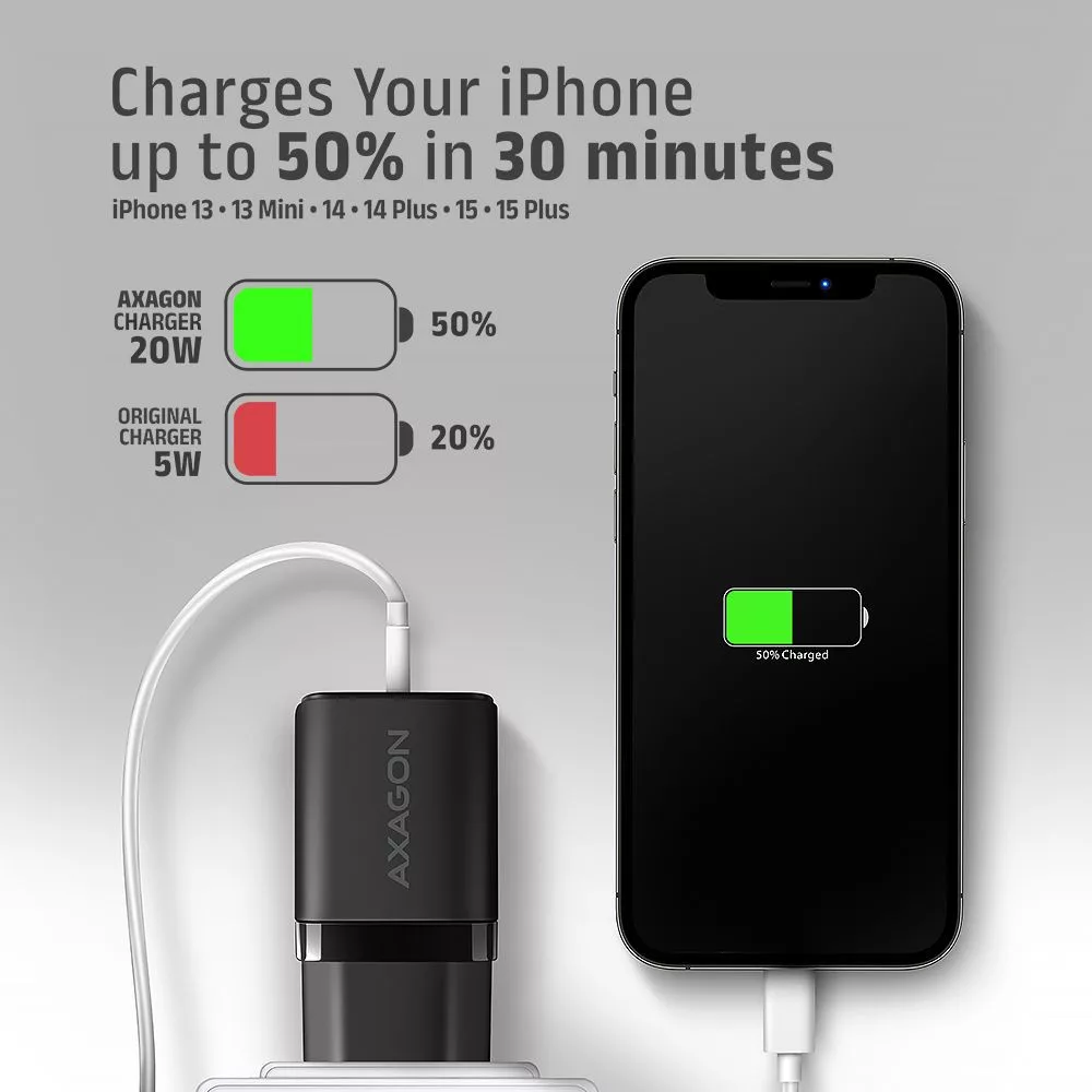 A töltő támogatja a 20W-os PD töltést az iPhone 12, 13, 14 és 15, valamint azok Pro és Pro Max modelljeihez. Az adapter más gyors telefontöltési szabványokkal is kompatibilis, mint például az Apple iPhone, iPad, Samsung, Huawei, Honor, Xiaomi.