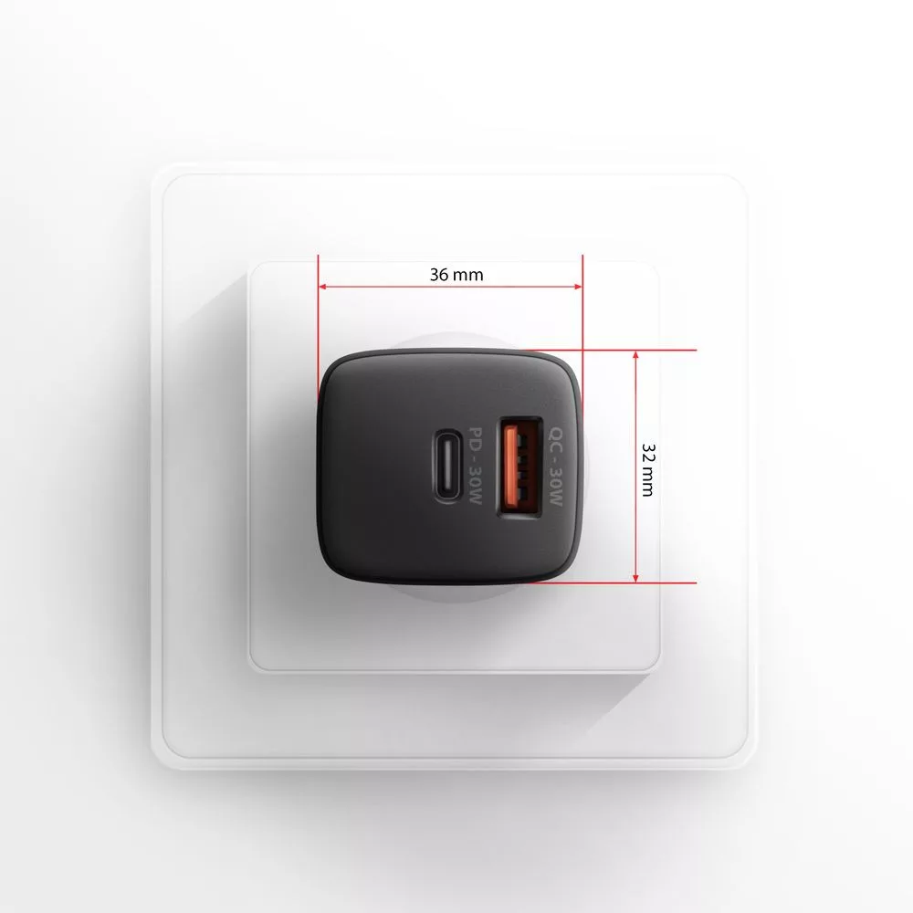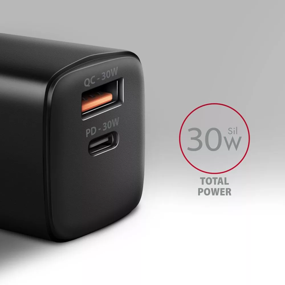 Kompakt USB fali töltő AXAGON ACU-PQ30 Sil egyszerre akár két mobileszköz gyors töltéséhez. A 30W összteljesítménnyel a töltő a lehető legnagyobb sebességgel tölti a telefonokat és más mobileszközöket Az adapter egy szabványos USB-A csatlakozóval, de kétoldalas USB-C csatlakozóval is rendelkezik.