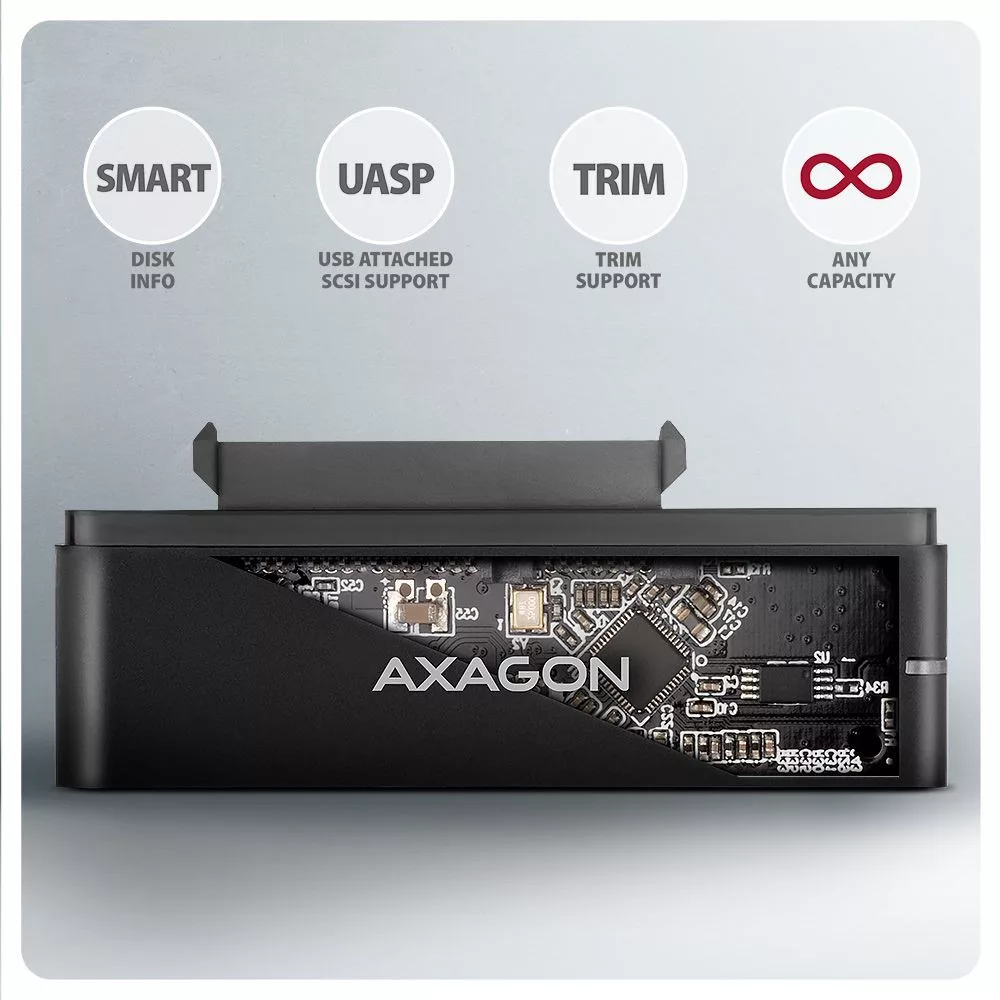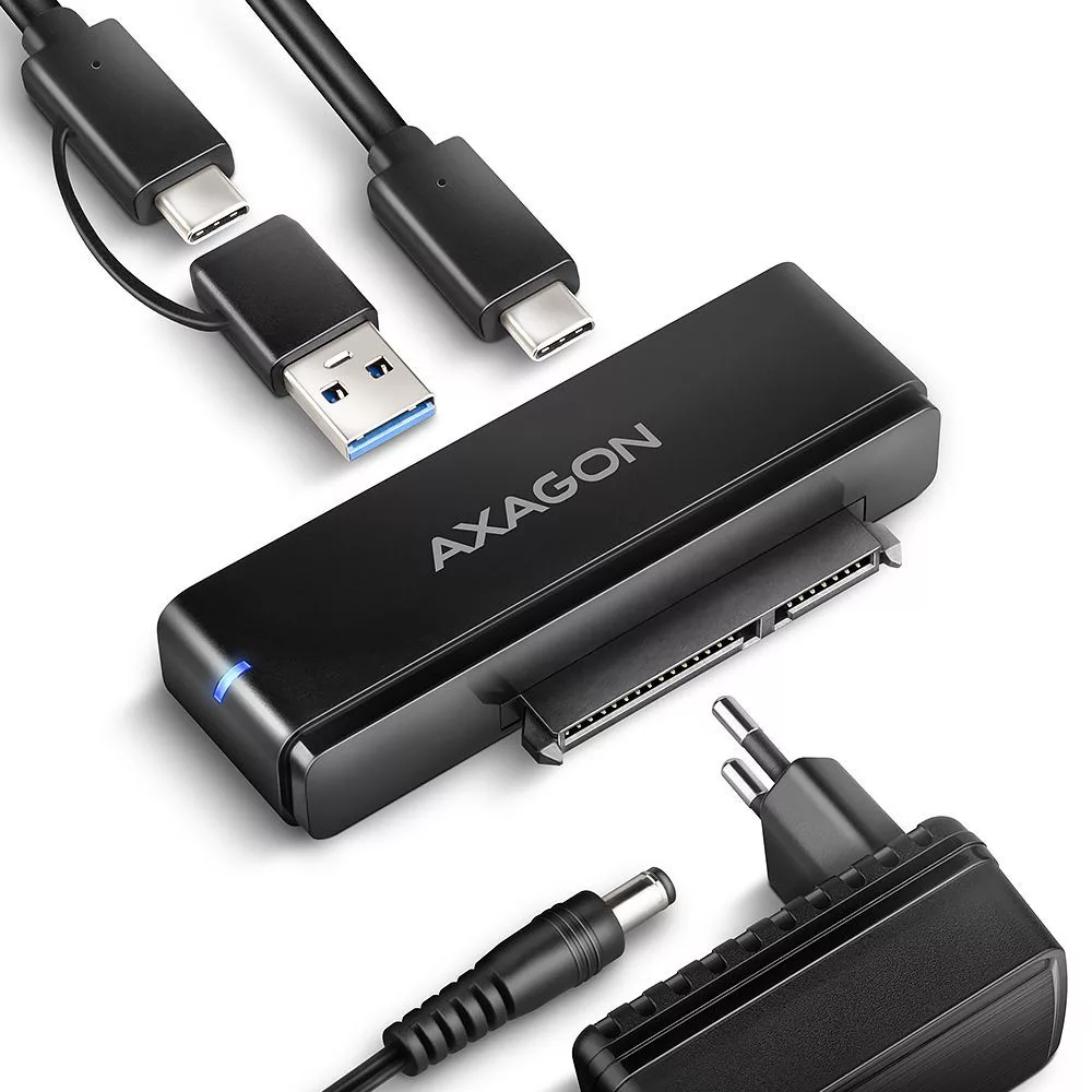 Az AXAGON ADSA-FPX FAST PORT X univerzális adapter USB-C 10Gbps és SATA 6G interfésszel 2.5" / 3.5" SATA merevlemez vagy SSD meghajtó egyszerű csatlakoztatására szolgál. Az akár 10 Gb/s átviteli sebességű, gyors USB 3.2 Gen 2 interfésznek köszönhetően a 2.5"-os SSD-k sebessége nem korlátozott, és körülbelül 20%-kal gyorsabb, mint az USB 3.2 Gen 1 (USB 3.0) adapterek vagy dobozok.