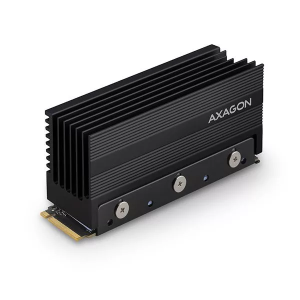 A nagy hűtőfelületnek és a fémváznak köszönhetően a hűtő ideálisan elvezeti a hőt az M.2-es tárcsa mindkét oldaláról, és így maximális hűtési hatékonyságot ér el. A magas hűtési hatékonyság miatt ez a hűtő az AXAGON márka legerősebb hűtőmodelljévé teszi.