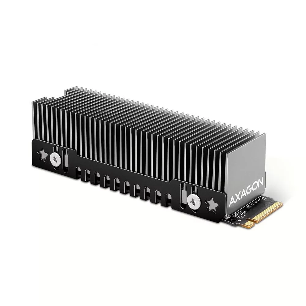 A hűtő nem csak M.2 AXAGON adapterekkel, hanem M.2 (NGFF) foglalatokkal is használható alaplapokon stb. A nagy hűtőfelületnek és a fémváznak köszönhetően hatékonyan vezeti el a hőt az M.2-es tárcsa mindkét oldaláról, ezáltal maximális hűtési hatékonyságot ér el. Magas hűtési hatékonyságának köszönhetően ez a hűtő az AXAGON márka egyik legerősebb hűtőmodellje.