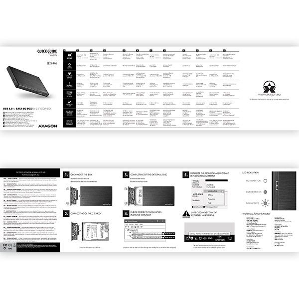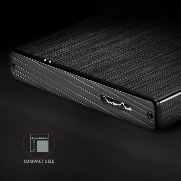A kompakt alumínium AXAGON EE25-XA6 ALINE külső tok USB 3.0 és SATA 6G interfész 2.5" SATA merevlemezekhez és SSD-k számára készült.