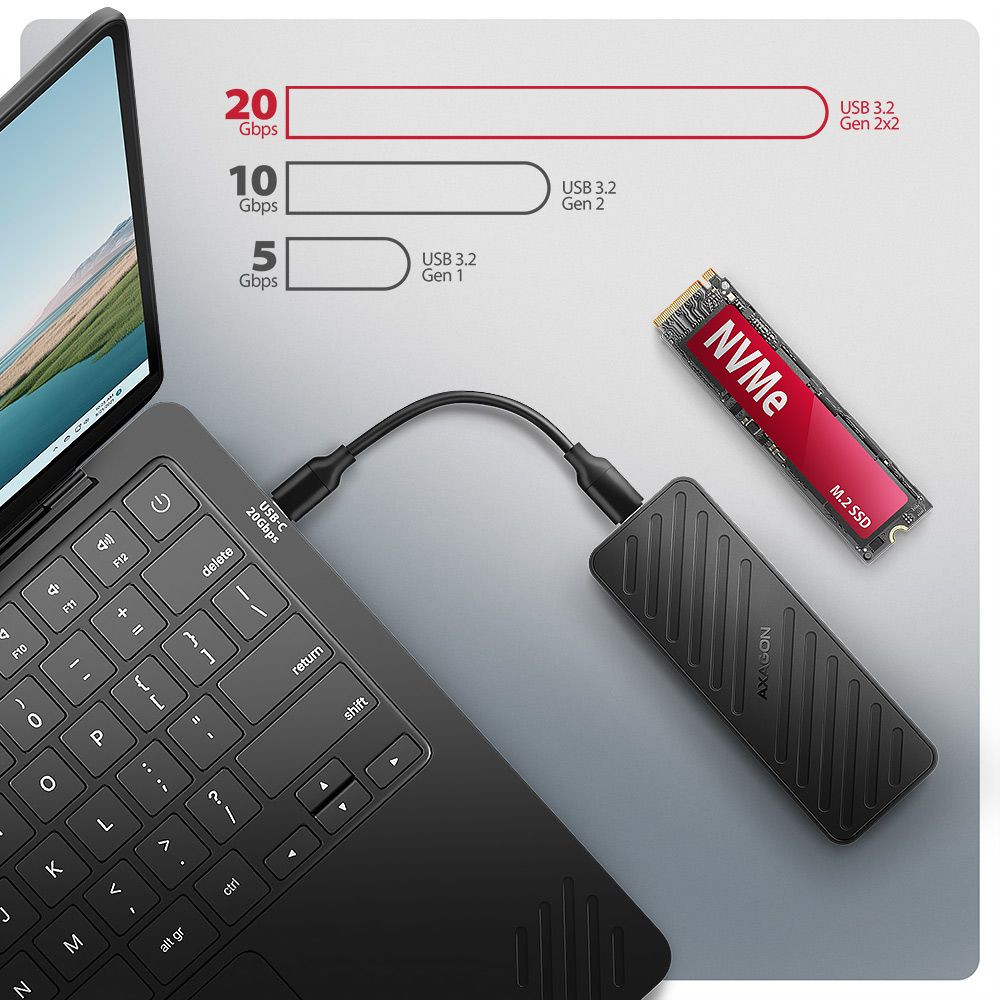 • USB-C 20Gbps külső doboz M.2 SSD-hez,
