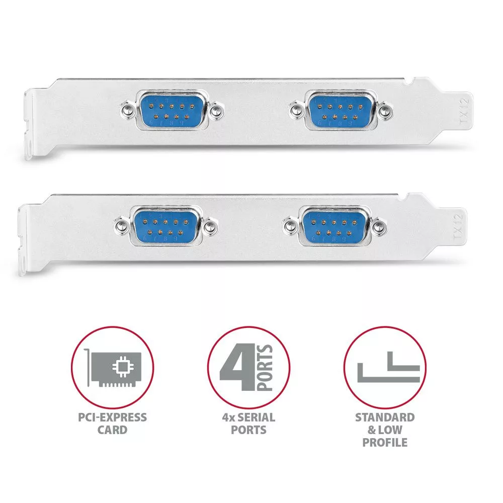 Az AXAGON PCEA-S4N PCI-Express kártya felruházza az asztali számítógépet négy, DB-9 csatlakozóval ellátott RS-232 soros porttal.