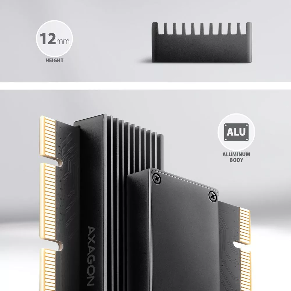 Az adapter bordázott alumínium lemezfedéllel van felszerelve, amely passzív hűtőbordaként szolgál. A nagy hűtőfelületnek és a mellékelt hőpárnáknak köszönhetően a hűtő elvezeti a hőt az M.2-es lemez mindkét oldaláról, és így maximális hűtési hatékonyságot ér el. Így ideális még az igényes PCIe 5.0 NVMe SSD-khez is.