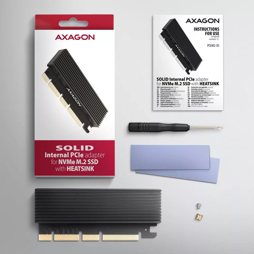 A belső AXAGON PCEM2-XS adapter lehetővé teszi az NVMe M.2 SSD lemez PCI-Express gyűjtősín segítéségével végzet számítógépbe csatlakoztatását. A kiváló minőségű megmunkálásnak, kompakt méreteknek, vonzó formatervnek és átgondolt hűtésnek köszönhetően az adapter ideális választást jelent az M.2 slottal fel nem szerelt asztali számítógépek upgrade-je esetén.