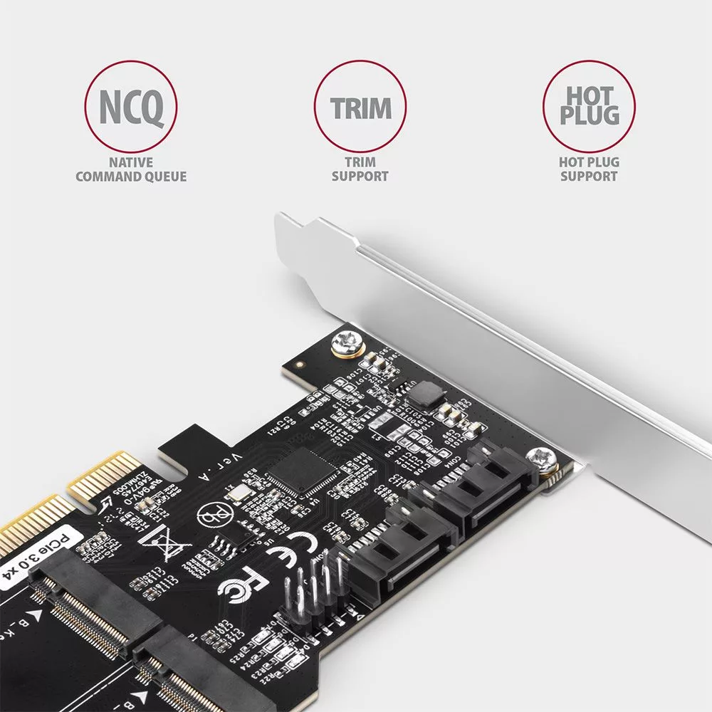 Az ASMedia chipsettel ellátott kártya nemcsak a SATA 3.0 specifikációkat támogatja, hanem más SATA technológiákat is, mint például a Hot-Plug, Native Command Queue (NCQ), TRIM, vagy Port Multiplier. Egyszerű telepítés a legtöbb operációs rendszerben illesztőprogramok telepítése nélkül. A mellékelt alacsony profilú hátlap lehetővé teszik a vezérlő telepítését a szabványos és az alacsony profilú PC-házakba is.