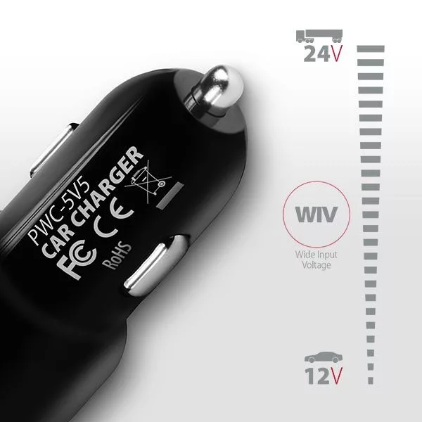 • Wide Input Voltage - széles bemeneti feszültség tartomány, megóvja az adaptert a bemeneti feszültséghiánnyal és lehetővé teszi a 12V-os vagy 24V-os fedélzeti forgalom automatikus felismerését.