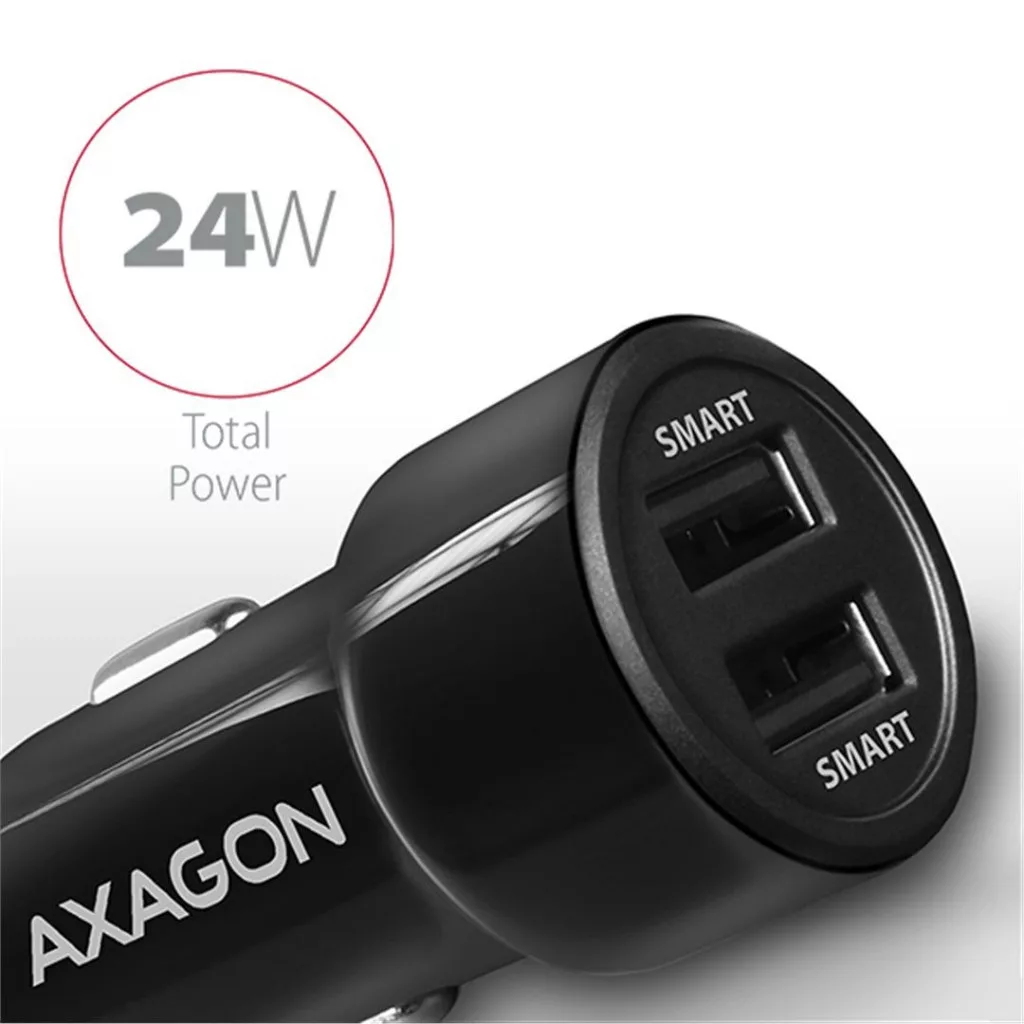 Autós töltő, 2xUSB-A, 5V, 2,4A, 24W, Black