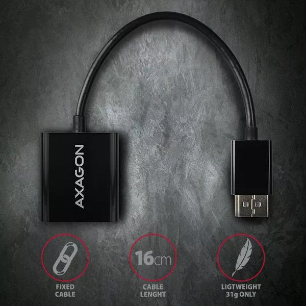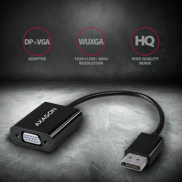 DisplayPort -> VGA aktív AXAGON RVD-VGN adapter régebbi VGA monitor/TV/vetítő Display Port kimenetes számítógépre csatlakoztatásához.
