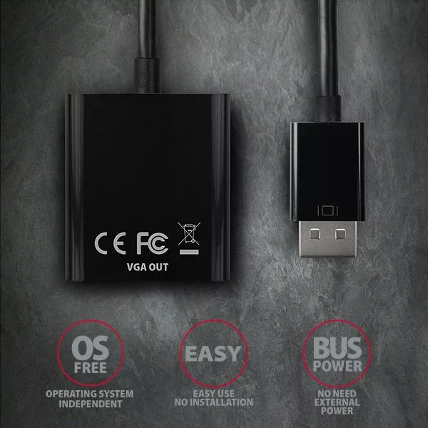 Az átalakító egyirányú, azaz DP – VGA átalakító, nem fordítva.