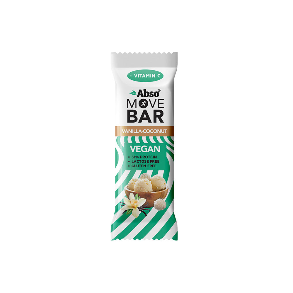 Abso MOVE BAR a szeletkülönlegesség! Vegán glutén-és laktózmentes fehérjeszelet hozzáadott édesítőszerek nélkül! Ha eddig az édesítőszerek tartottak vissza a fehérjeszeletektől, akkor EZ a Neked való finomság! Nem tartalmaz édesítőszert, viszont C-vitamin és antioxidáns van benne. (A tartósításra természetes rozmaring kivonatot használunk, amely egy kitűnő antioxidáns forrás. Az ízét nem, csak a hosszútávú pozitív hatást fogod érezni.) Az ABSO MOVE BAR-t úgy fejlesztettük ki, hogy azonnali energiaforrásként szolgáljon számodra. Kiválóan alkalmas arra, hogy sportolás előtt/alatt/után feltöltsd az energiaraktáraidat, hiszen gyors felszívódását a szervezet nagyon rövid idő alatt hasznosítani tudja a benne lévő szénhidrátot - amiből az energiát nyered. Sportolás, mozgás után pedig a benne lévő fehérjének (11,5g/szelet) az izmaid épülése, regenerálódása is biztosított. Sőt, ha épp olyan érzésed van, hogy "le akaresni a fejed" akkor is érdemes a szelet után nyúlni, mert pikk-pakk feltölt energiával, ráadásul nagyon finom is! Élvezet lesz minden falat. Összetevők: Abso fehérje keverék (borsófehérje-izolátum, rizsfehérjekoncentrátum) szirup keverék (fruktóz-glükózszirup, nyers barna nádcukor) kakaós bevonat (barna nádcukor, növényi zsír (pálmamag*, pálma*, shea), csökkentett zsírtartalmú kakaóporge (1 szerek) (lecitin), természetes aroma) napraforgó lecitin, repceolaj, kókuszreszelék, aromák, C-vitamin (aszkorbinsav), antioxidánsok: rozmaring kivonat. *RSPO tanúsított. A termék nem hidrogénezett növényi olaj felhasználásával készült. Átlagos tápérték 100g termékben: Energia 1864 KJ / 652 KJ Zsír 18,4g Amelyből telített zsírsavak 6,8g Szénhidrát 32,4g Amelyből cukrok 24g Rost 0,8g Fehérje 33g Só 0,511 4 C-vitamin