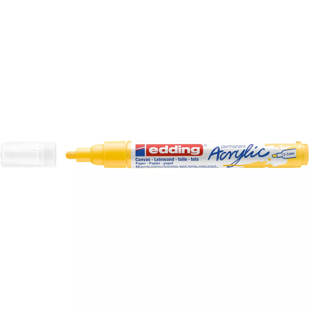 Akril marker világos vagy sötét felületekre történő festéshez, ideális olyan anyagokhoz, mint a vászon vagy a festőpapír. - A kerekített csúcs vonalvastagsága 2-3 mm. - A kiváló minőségű, pigmentált, vízbázisú akrilfesték száradás után rendkívül tartós, átlátszatlan, fényálló és szagtalan. - A neon sárga szín áttetsző. Megfelelő pótcsúcsok (edding 5100 pótcsúcsok) elérhetők.- 26 féle színválasztékban elérhető- Keresse a további változatokat - edding 5000 és az edding 5300-at, valamint az edding 5400 3D hatású 2 végű akril markereket. Katalóguskód: 36472