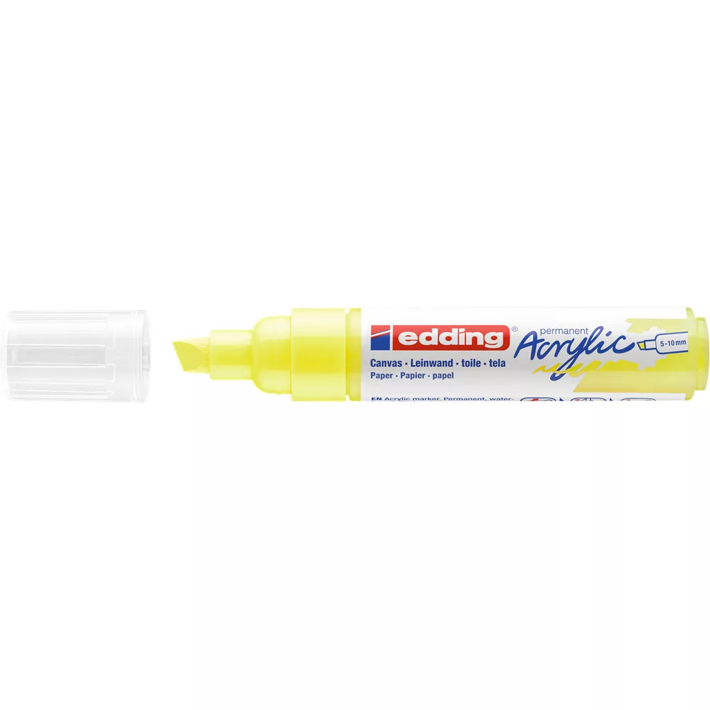 Akril marker világos vagy sötét felületekre történő festéshez, ideális olyan anyagokhoz, mint a vászon vagy a festőpapír. - A vágott írócsúcs vonalvastagsága 5-10 mm. - A kiváló minőségű, pigmentált, vízbázisú akrilfesték száradás után rendkívül tartós, átlátszatlan, fényálló és szagtalan. - A neon sárga szín áttetsző. Megfelelő pótcsúcsok (edding 5000 pótcsúcsok) elérhetők.- 26 féle színválasztékban elérhetők.- Keresse a további változatokat - edding 5100 és az edding 5300-at, valamint az edding 5400 3D hatású 2 végű akril markereket. Katalóguskód: 36490