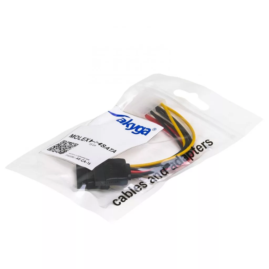 Az Akyga® AK-CA-16 egy adapter, amely lehetővé teszi két további SATA-csatlakozó kialakítását a MOLEX aljzathoz történő csatlakoztatással.