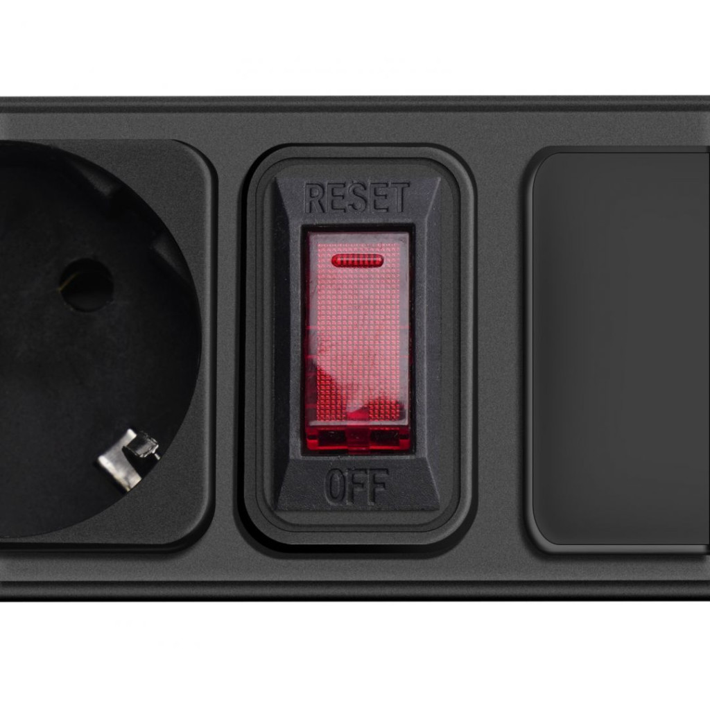 A túlfeszültségvédős elosztó ráadásul 1,8 méteres kábellel van ellátva. Ez azt jelenti, hogy az eszköz hosszabbítókábelként is használható. Ezenkívül rendelkezik egy be-/kikapcsolóval, amely lehetővé teszi az összes csatlakoztatott eszköz gyors és biztonságos kikapcsolását. A konnektorszalag 10 A-os automatikus biztosítékkal van felszerelve, amely véd a túlfeszültségek ellen, és megakadályozza a csatlakoztatott eszközök károsodását.