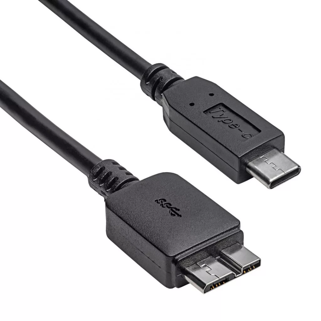 USB kábel, microUSB-B, USB-C, USB3.0, Male/Male, 0,5m, Black, Adatkábel