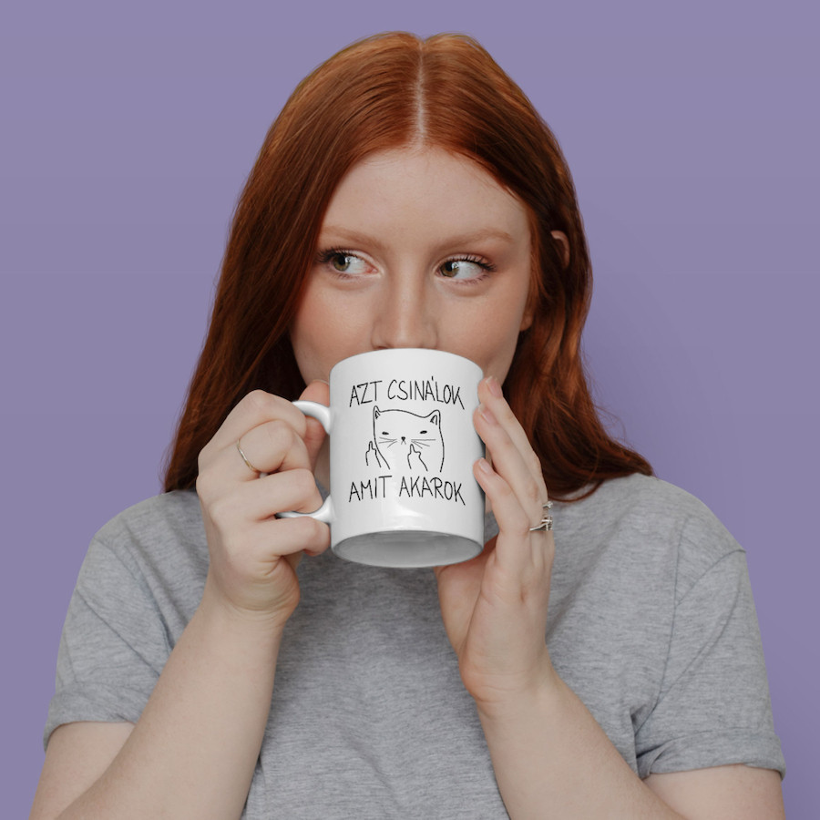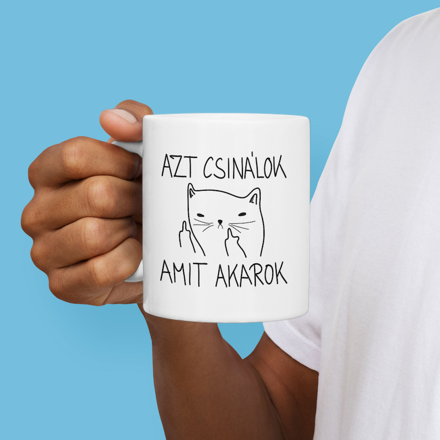 Azt Csinálok Amit Akarok fehér cicás bögre.