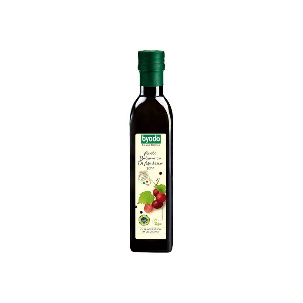 Modenai IGP BalzsamecetA Byodo Modenai IGP balzsamecet Észak-Olaszországból, az ecetgyártás szívéből - Modena és Reggio Emilia régióból származik. A mélysötét balzsamecet különösen kiegyensúlyozott, harmónikus ízű, a finom bio vörösborecet és sűrített szőlőmust különleges keverési arányának köszönhetően. A csodálatosan testes, lendületes ecet klasszikusa az IGP (földrajzi védettség) utótagot is viseli természetesen. A finomság természtes erjesztéssel készül, nem melegítik, és nem kezelik kénnel sem. Összetevők: Vörösborecet*, szőlő sűrítmény*.*összetevők bio gazdálkodásból.Nettó tömeg: 500mlSzáraz, hűvös helyen tárolandóSzármazási hely: OlaszországÁtlagos tápérték 100g termékben:Energia: 553 kJ/ 130 kcalZsír: 0,0 g- Amelyből telített zsírsavak: 0,0 gSzénhidrát: 27 g- Amelyből cukrok: 26 gFehérje: 0,6 gSó: 0,02 g