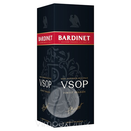 A Bardinet Brandy VSOP egy kifinomult francia brandy, amelyet gondosan érlelnek tölgyfa hordókban. A VSOP minősítés garancia a kiegyensúlyozott, gazdag ízvilágra, amelyet a legalább 4 év érlelés ad meg. Az alkoholtartalom 36% vol, így tökéletes egyensúlyt kínál a karakteres test és a selymes utóíz között.