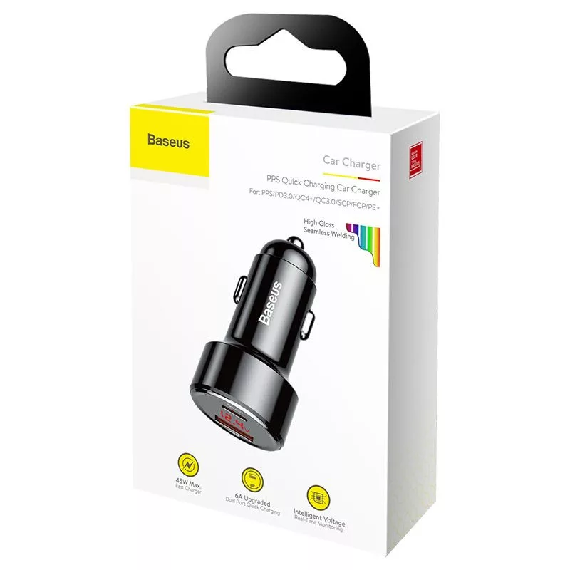A Baseus Magic Series szivargyújtóba dugható autós töltője egy modern, stílusos USB töltő. Egy darab USB 3.0 porttal es egy USB-C porttal rendelkezik, ami által gyorstöltés funkcióra is képes. A fedlapján a két aljzat között egy digitális kijelzőt találunk, mely mutatja a töltés mértékét. Prémium minőségű rozsdamentes anyagokból készült, így az élettartama is kifejezetten magas. Használata egyszerű, kicsomagolás után egyből üzembehelyezhető.