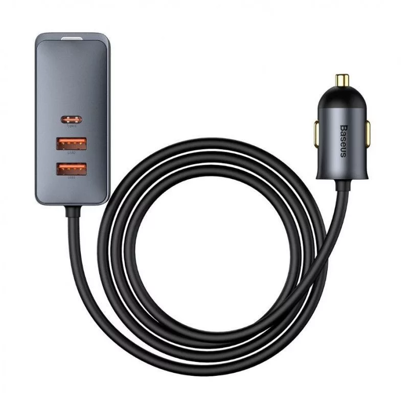 Baseus Share Together autós töltő hosszabbítóval, 3x USB, USB-C, 120W, szürke