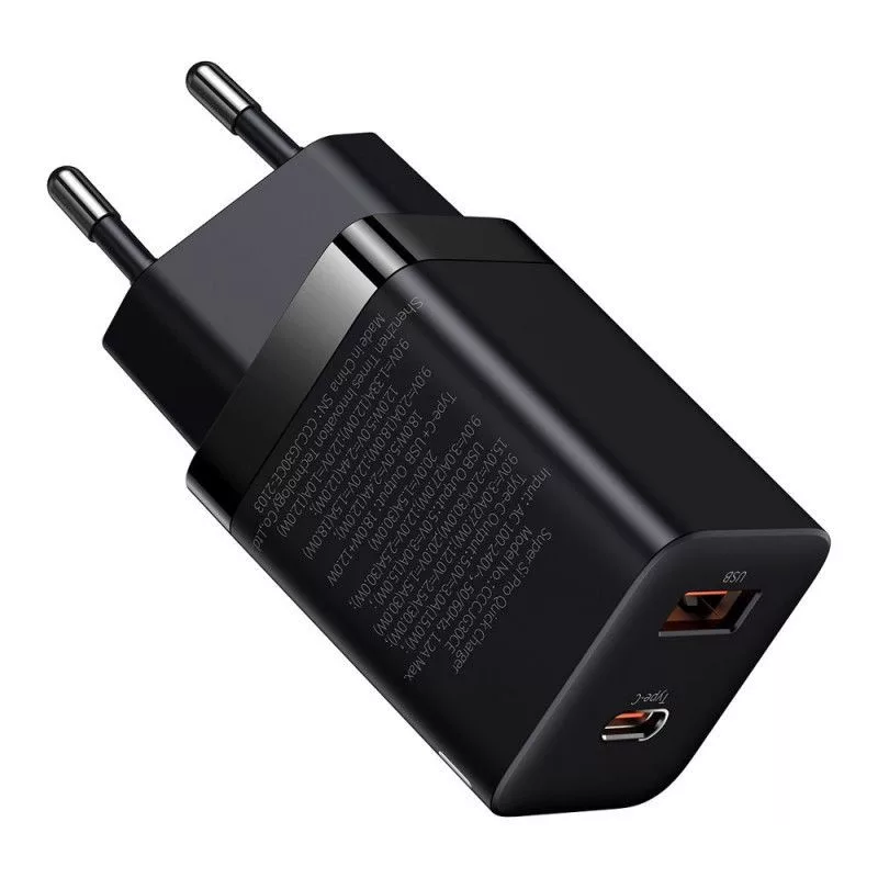 Adapter, 1xUSB-A, 1xUSB-C, 5V/9V/12V/15V/20V, 3A, 30W, QC, PD, Black