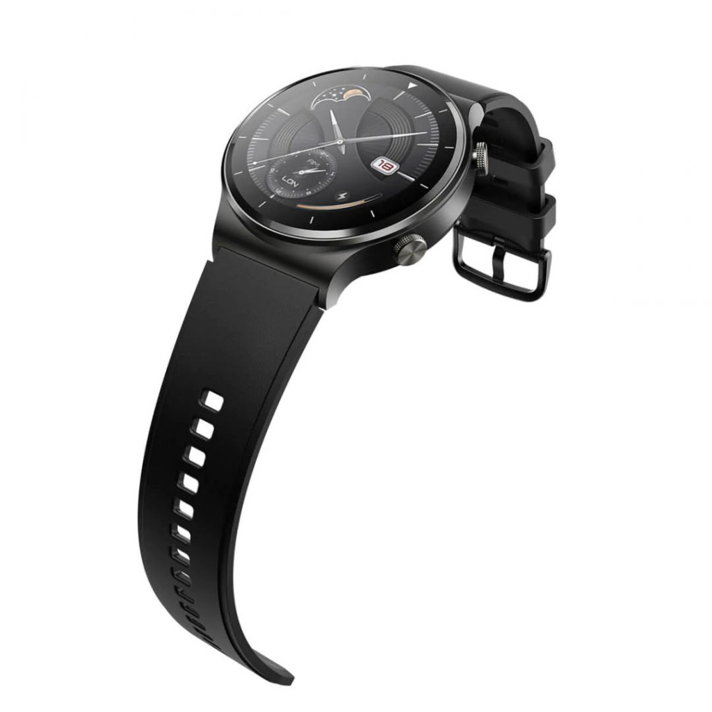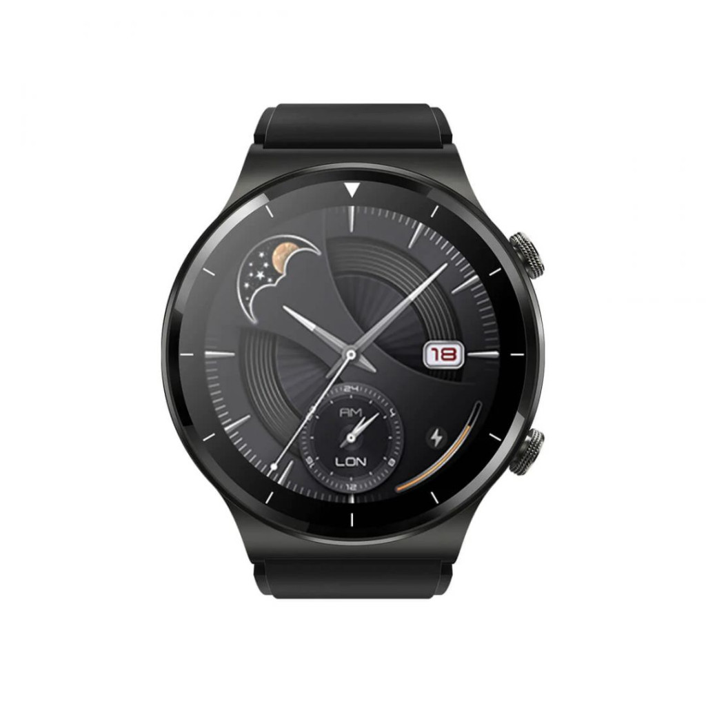 Kijelző mérete: 1,28", iOS, Android, >1 hét, Vízálló, IP68, Bluetooth, Pulzusmérő, Üzenet és hívás kezelése, Alvás figyelés, Elégetett kalória kijelzés, Zene vezérlése, Tok mérete: 46x46x11,1mm