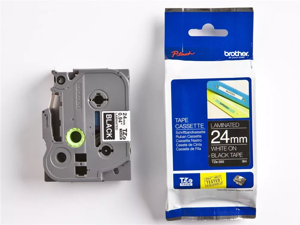 Brother TZE-355 laminált P-touch szalag (24mm) Black on White - 8m