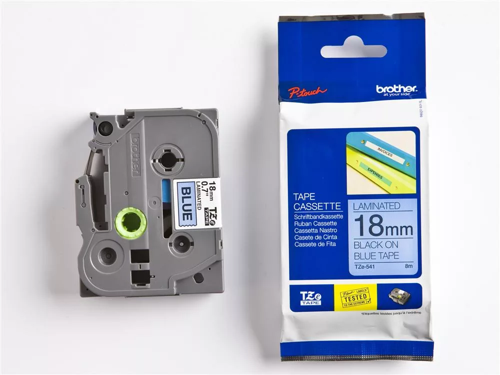 18mm széles, kék alapon fekete laminált szalag, 8m.A Brother TZe kazetták úgy lettek megtervezve, hogy tökéletesen működjenek a P-touch címkéző gépekkel és kiváló professzionális, tartós címkéket kapjunk.