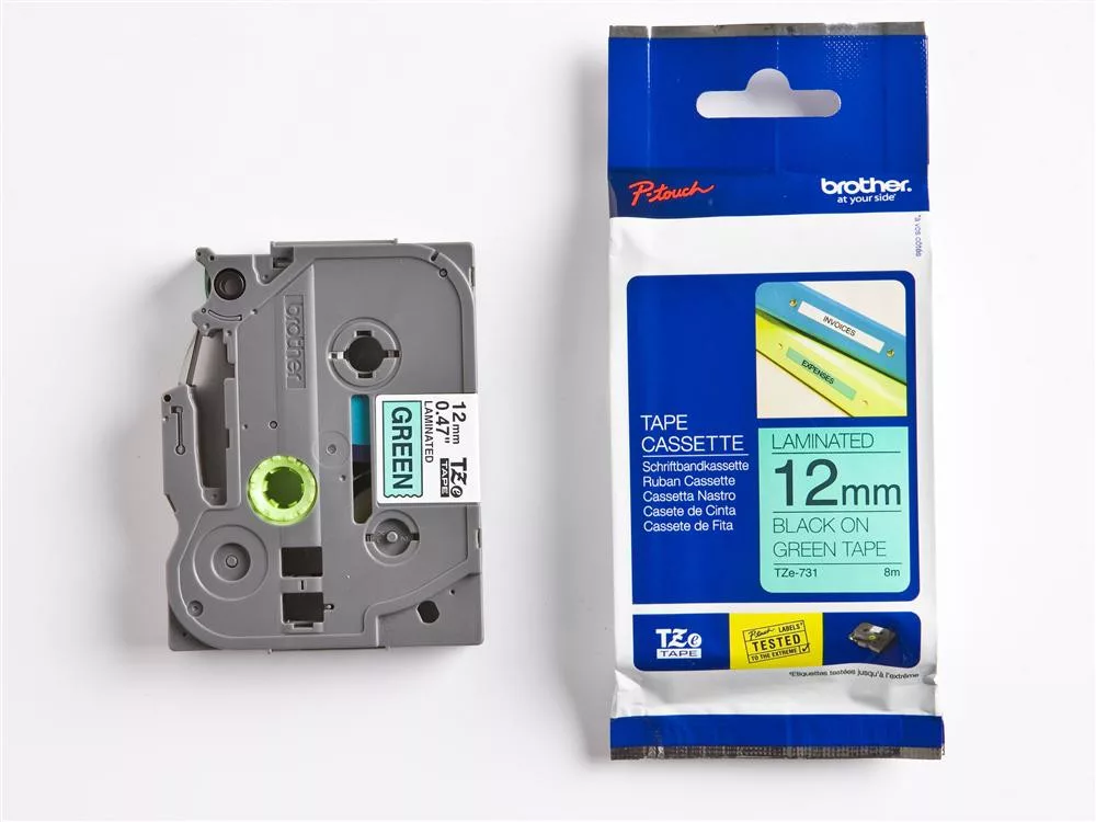 Brother TZE-731 laminált P-touch szalag (12mm) Black on Green - 8m