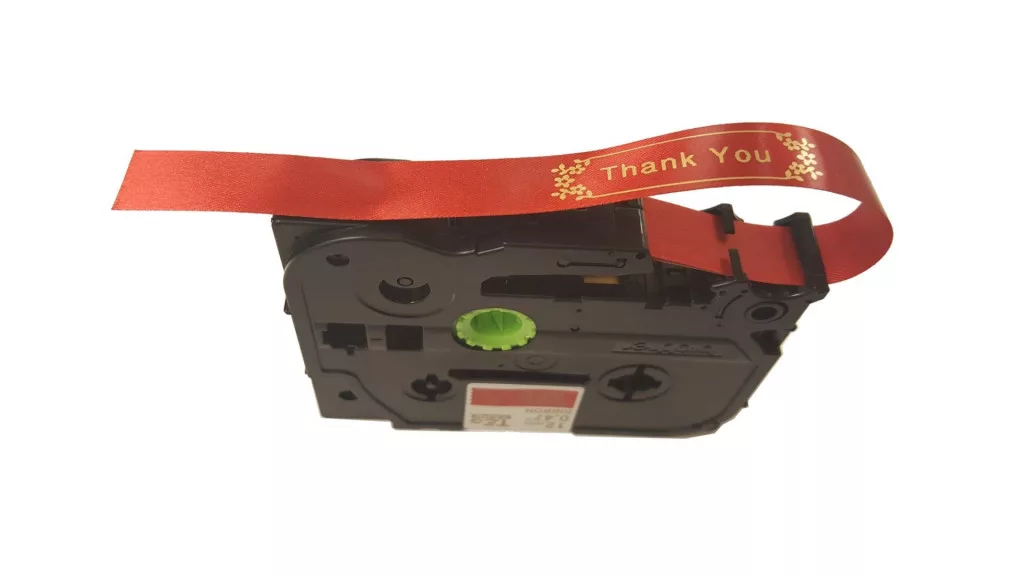 Készítsen esztétikus és ünnepi címkéket az eredeti Brother TZe-RW34 feliratozó szalaggal gyorsan és könnyedén. A piros színű selyemszalag arany betűs feliratokkal esztétikus kiegészítője köszöntő kártyáknak és ajándékoknak. Fényes és stílusos megjelenésű, így kifejezetten dekorációs célokra ajánljuk. Kompatibilis mindazon P-touch címkéző készülékekkel, amelyeknek a burkolatán a szalagkazetta helyén a TZ vagy TZe logó látható.