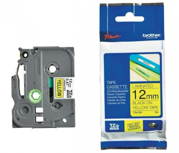 **TZe -631 öntapadós laminált címkeszalag tartós feliratok nyomtatásához.** * Szalag típusa: Standard laminált * Szalag szélessége: 12 mm * Szalag hossza: 8 m * Szalag színe: Sárga * Felirat színe: Fekete