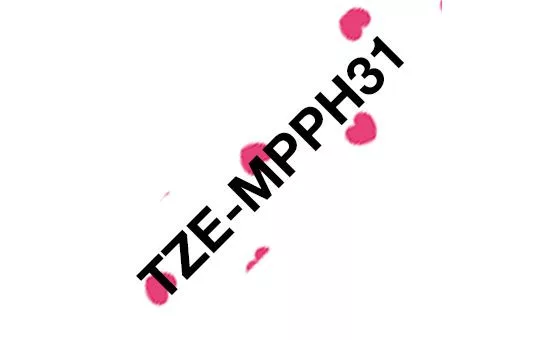 Brother TZe-MPPH31 laminált P-touch szalag (12mm) Black on Pink Heart - 4m