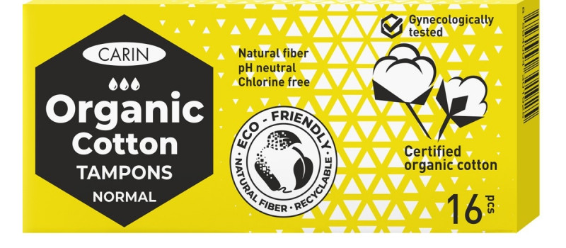 Mi abban hiszünk, hogy nem szabad kitenni a nőket növényvédőszer maradványoknak, azon színezékeknek és dioxinoknak, különösen nem egy ennyire érzékeny felületen. Ha 100% biopamut tampont használsz, akkor pontosan tudhatod, hogy mi kerül a testedbe! A Carin Organic 100% biopamutból állnak. A pamut gyengéden szívja fel a vért, és széltében képes tágulni. A biopamut zsinór segítségével könnyedén eltávolíthatod. A Carin Organic termékek 100% biopamutból és növényi alapú, lebomló, komposztálható anyagokból készülnek. Készítésüknél és fehérítésüknél nem használnak klórt, szintetikus illatanyagokat és növényvédőszereket, műselymet. Így egészséges és környezetbarát alternatívái a hagyományos tamponoknak és betéteknek.